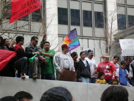 Other speakers at the rally included Jeremiah Jeffries of Teachers for Social Justice and SF People’s Organization and Nancy Esteva, an immigrant from Oaxaca, Mexico clothed in traditional dress, who recited a poem she had written. Hunger striker Jay Pugao spoke about the fact that as a teacher, the Sensenbrenner and Specter bills would criminalize him and the undocumented youth he teaches.