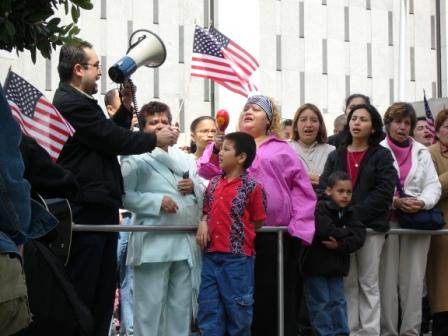 Marta spoke briefly at the San Jose rally, telling them that we had won the fight toturn back the enforcement proposals in H.R. 4437 and instead of “Si, se puede,” she instead declared to the crowd, “Si se pudo,” “Yes, we did!”